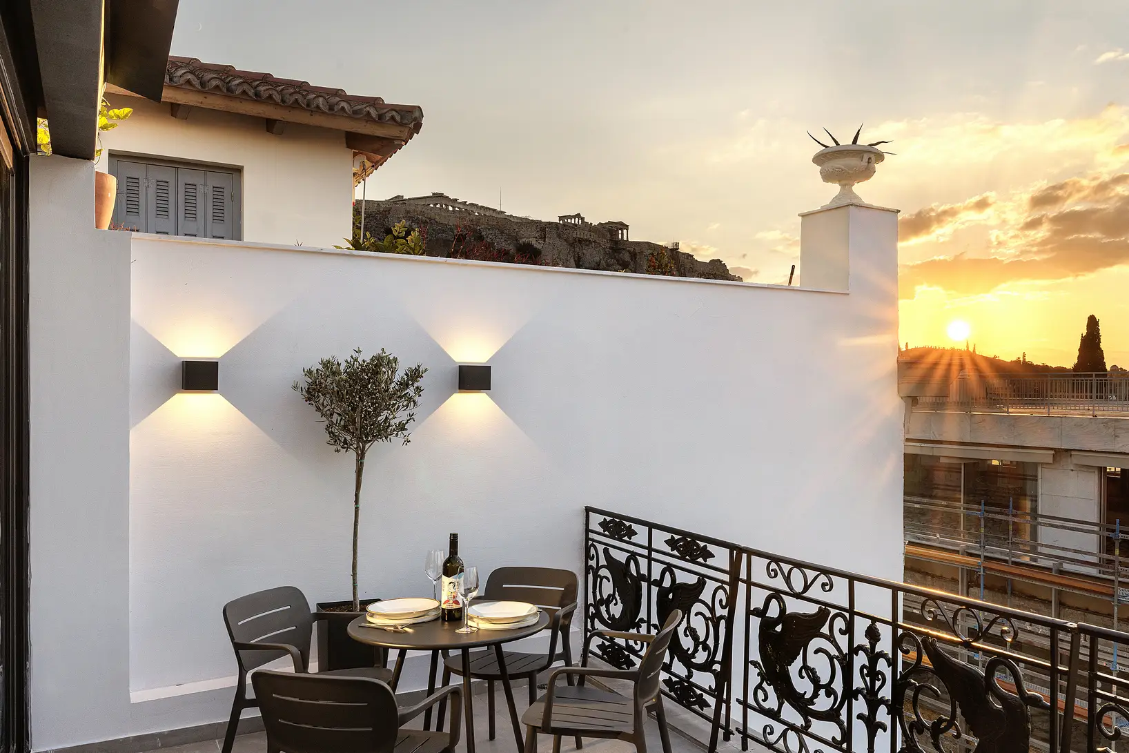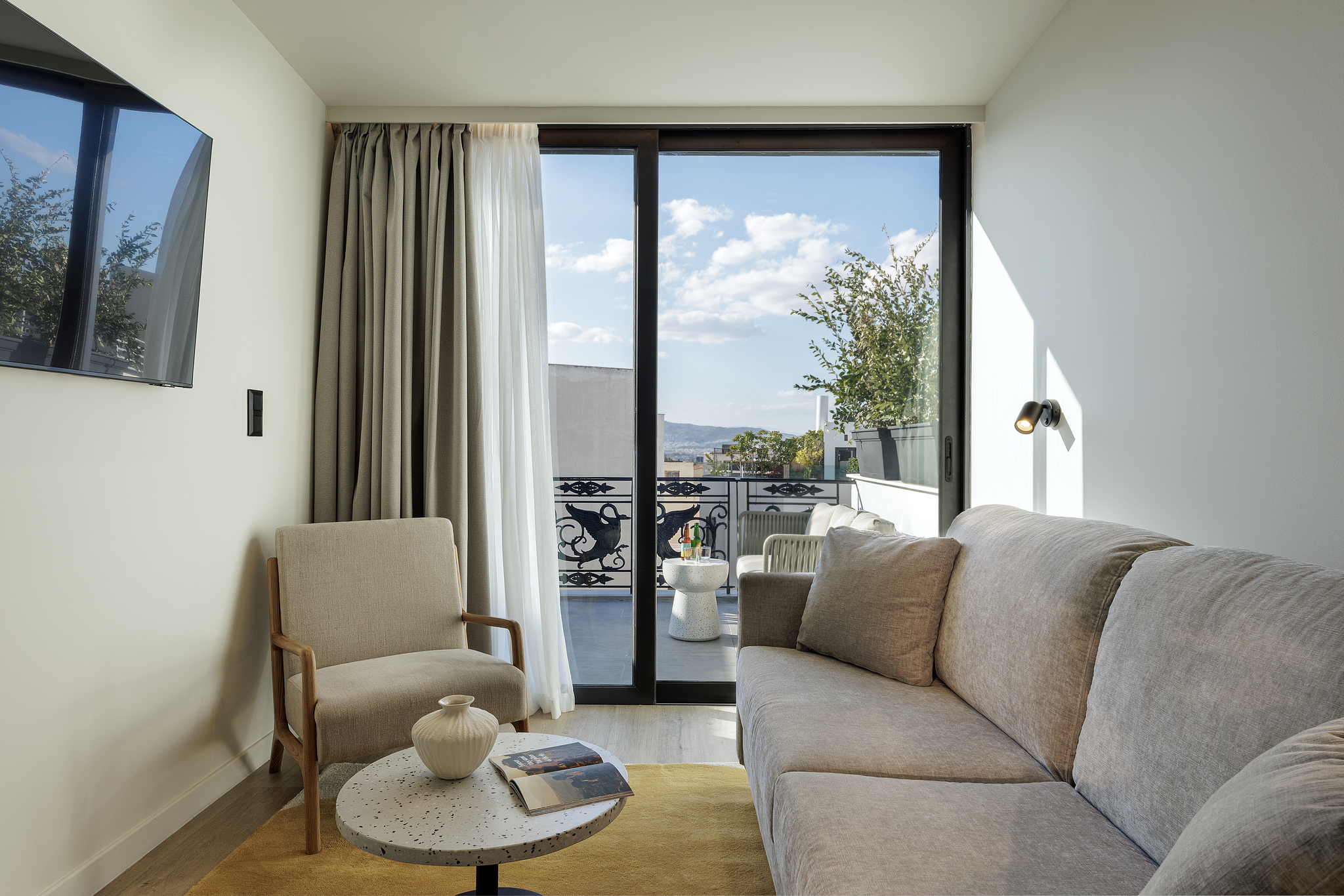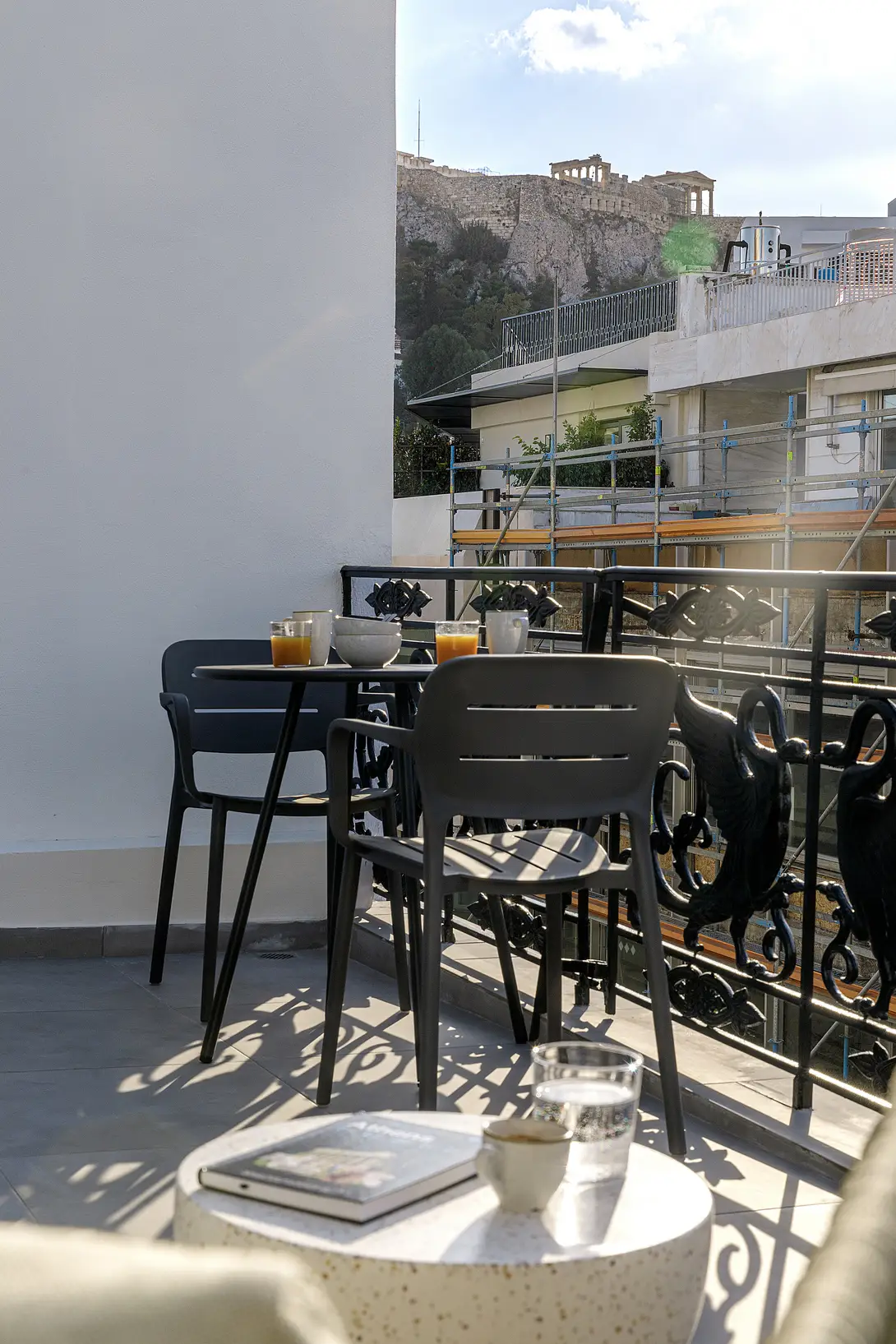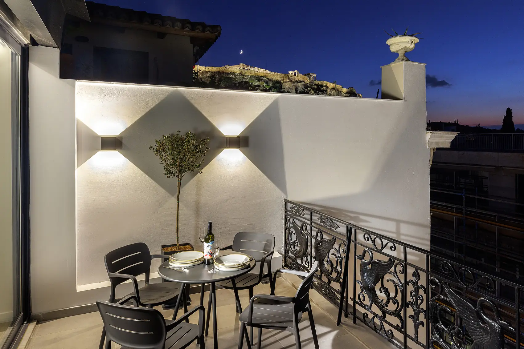 Το ρετιρέ περιλαμβάνει ένα ξεχωριστό υπνοδωμάτιο και έναν άνετο καναπέ-κρεβάτι στο σαλόνι – ιδανικό για οικογένειες ή μικρές παρέες. Βγείτε στο ιδιωτικό μπαλκόνι και απολαύστε τη ζωντανή ατμόσφαιρα της Πλάκας, της πιο γραφικής περιοχής της Αθήνας.
