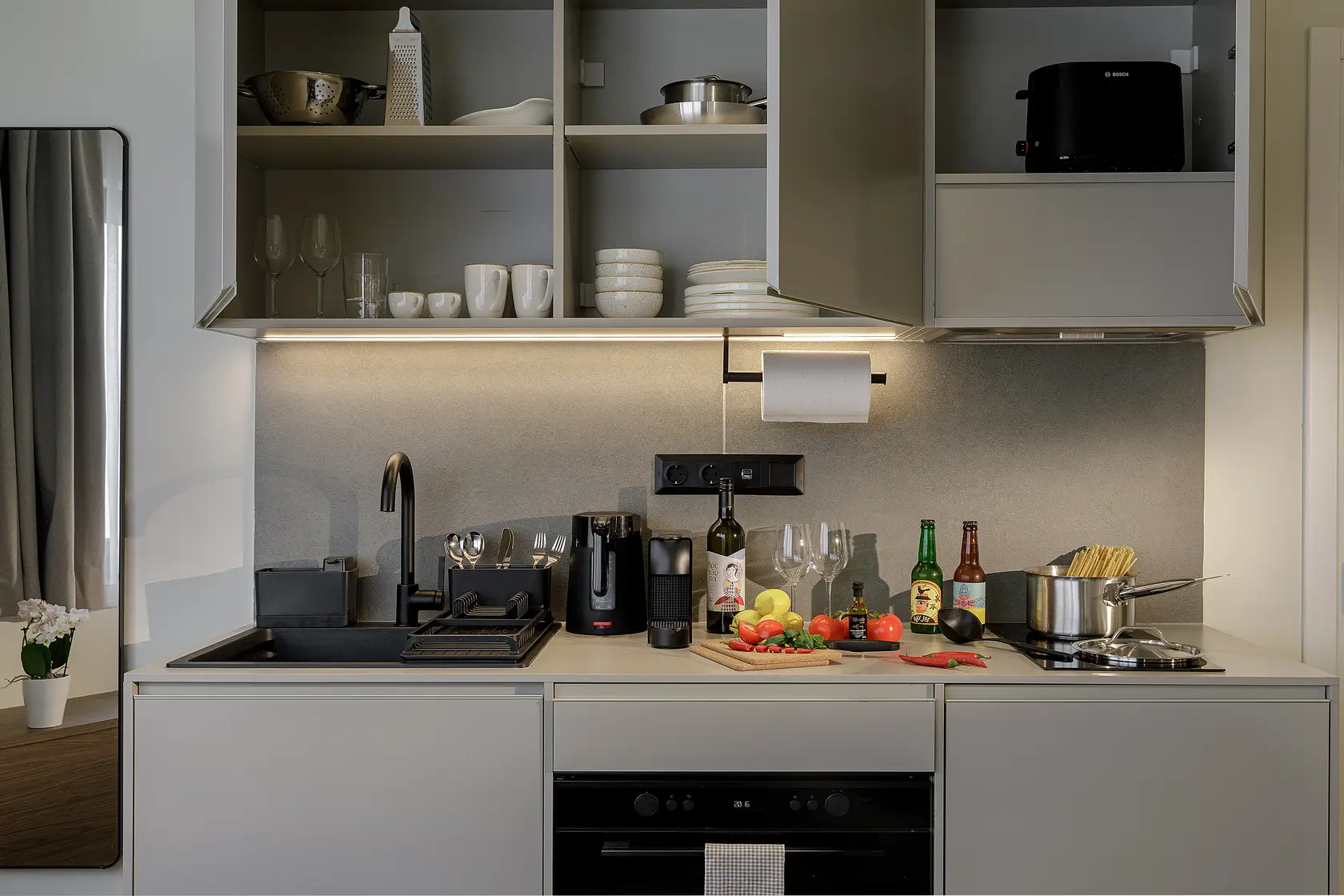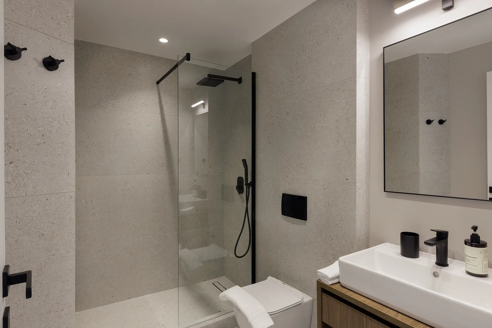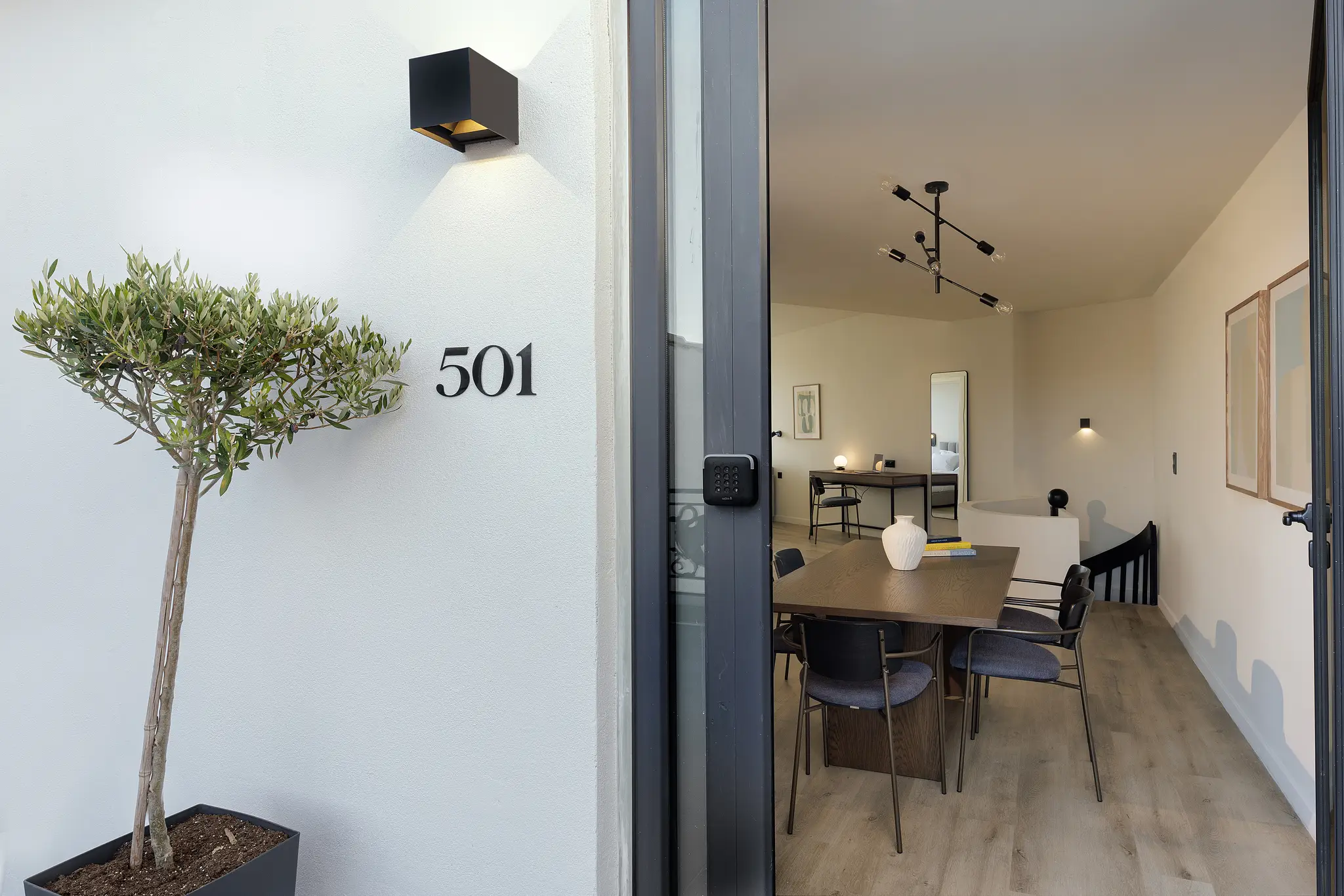 Το Μονόκλινο Ρετιρέ με Μπαλκόνι στο master Πλάκα Αθήνα είναι μια κομψή και άνετη επιλογή διαμονής για έως και τέσσερις επισκέπτες. Με 42 τ.μ. προσεγμένου χώρου, το ρετιρέ ακολουθεί μια μοντέρνα μίνιμαλ αισθητική, με ουδέτερους τόνους και λειτουργικά στοιχεία που προσφέρουν μια ήρεμη διαμονή.