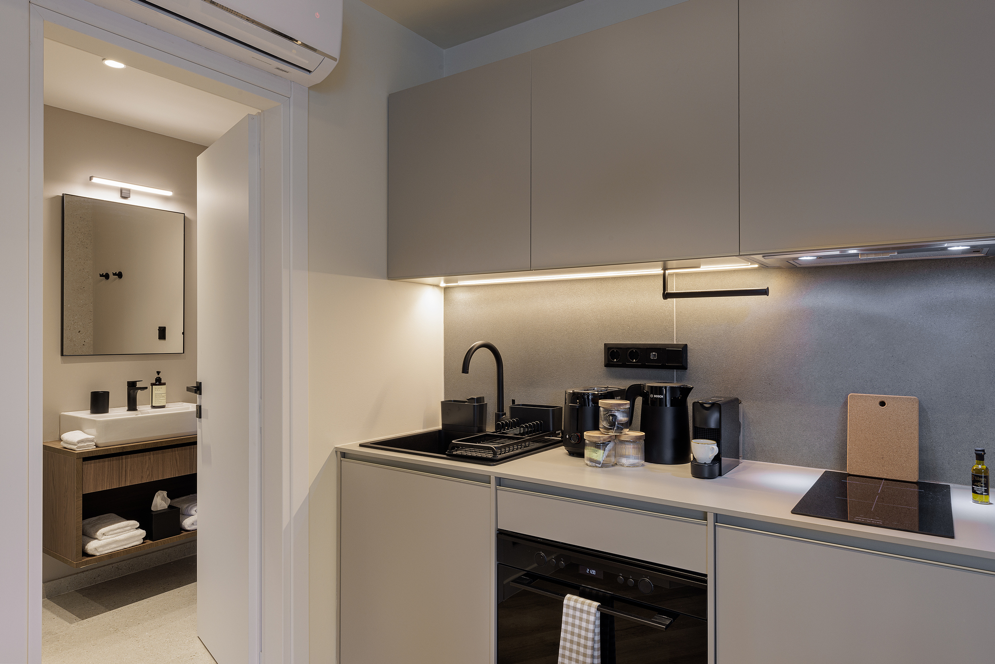 Το Στούντιο με Μπαλκόνι στο master Plaka Athens προσφέρει μια ζεστή και κομψή διαμονή για έως και δύο επισκέπτες. Με 25 τ.μ. προσεγμένου χώρου, το διαμέρισμα ακολουθεί μια μοντέρνα μίνιμαλ αισθητική, με ουδέτερους τόνους και λειτουργικά στοιχεία που δημιουργούν μια χαλαρωτική ατμόσφαιρα.