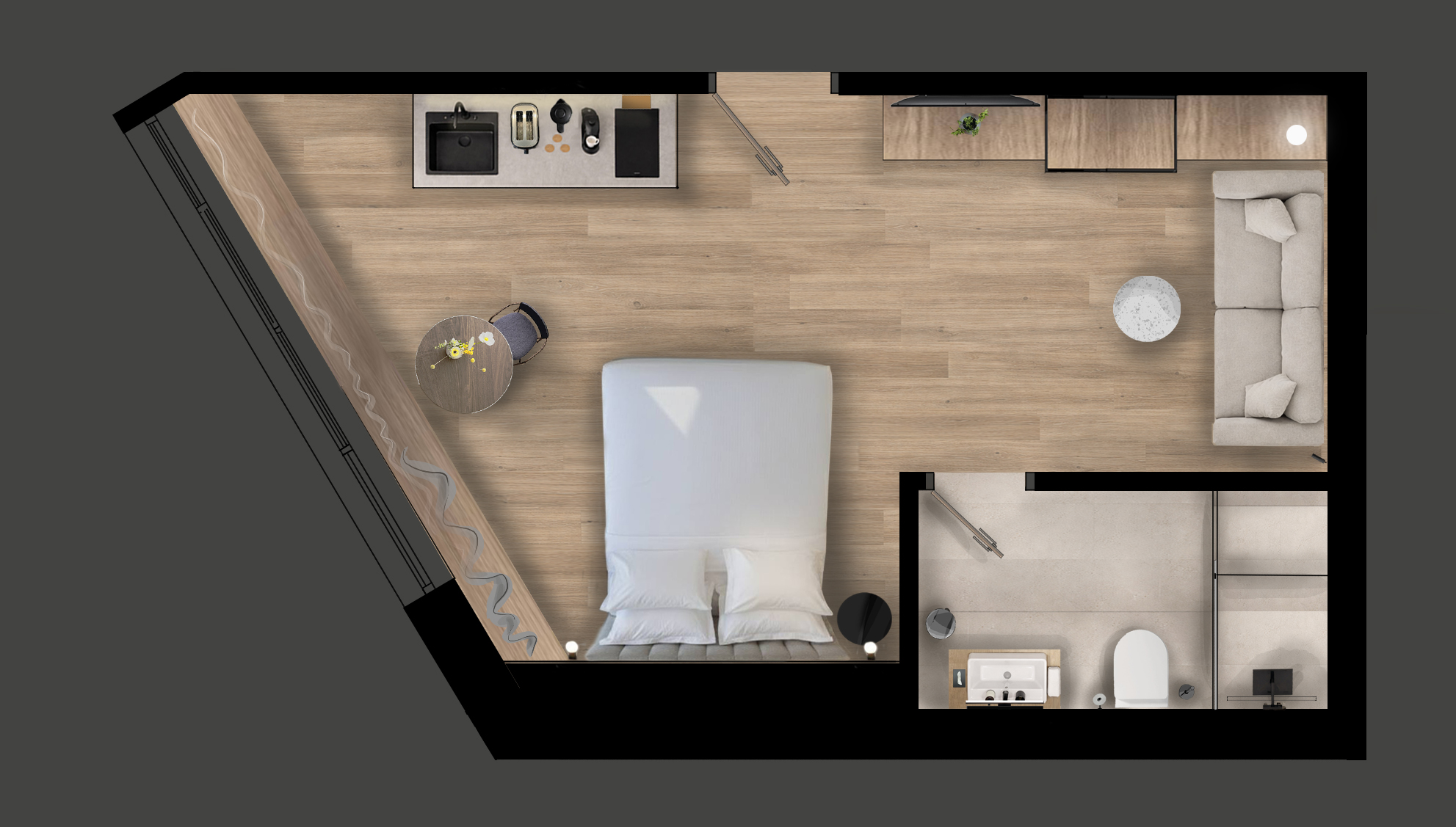 Το Στούντιο με Καναπέ-Κρεβάτι στο master Plaka Athens προσφέρει άνεση και ευελιξία, φιλοξενώντας έως και τέσσερις επισκέπτες. Με 30 τ.μ. προσεγμένου χώρου, το διαμέρισμα ακολουθεί μια μοντέρνα μίνιμαλ αισθητική, με ουδέτερους τόνους και λειτουργικές λεπτομέρειες που εξασφαλίζουν μια ήρεμη διαμονή.