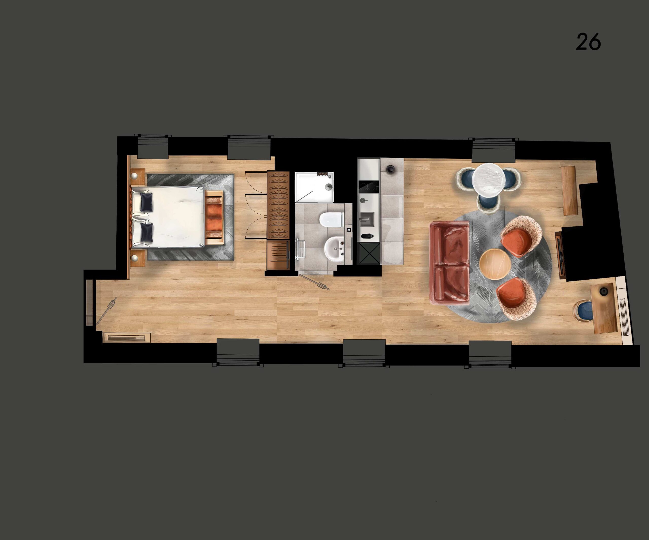 Με 62 τ.μ. κομψά διαμορφωμένου χώρου, το Μονόκλινο Open Plan Διαμέρισμα είναι ιδανικό για οικογένειες ή παρέες έως 4 ατόμων. Αυτό το ευρύχωρο διαμέρισμα συνδυάζει τη λειτουργικότητα με τη χαλαρωτική αισθητική του Σκανδιναβικού design. Ζεστοί γήινοι τόνοι, ξύλινα πατώματα, και φυσικές υφές δημιουργούν μια φιλόξενη και ήρεμη ατμόσφαιρα.