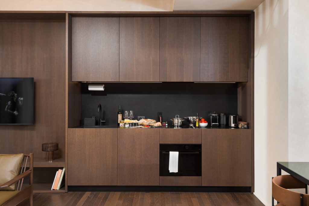 Κάθε διαμέρισμα είναι εξοπλισμένο με μηχανή καφέ – ιδανική για να απολαύσετε το πρωινό σας εσπρέσο πριν ξεκινήσετε τις ρωμαϊκές σας περιπέτειες. Οι πλήρως εξοπλισμένες κουζίνες, με πλυντήριο πιάτων και ψυγείο, σας προσφέρουν την απόλυτη ευκολία στην προετοιμασία των γευμάτων σας.