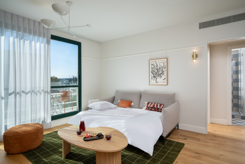 Απολαύστε τη διαμονή σας σε ένα ευρύχωρο διαμέρισμα 43 τ.μ. με ιδιωτικό μπαλκόνι, ιδανικό για έως 4 επισκέπτες. Το μπαλκόνι είναι το τέλειο μέρος για να χαλαρώσετε, να απολαύσετε τη θέα της πόλης και να νιώσετε τον παλμό του Τελ Αβίβ. Με άνετο σαλόνι και πλήρως εξοπλισμένη κουζίνα, αυτό το διαμέρισμα είναι ιδανικό τόσο για σύντομες αποδράσεις όσο και για μεγάλες διαμονές, προσφέροντας ευελιξία και άνεση. Απολαύστε μοντέρνες παροχές, όπως κλιματισμό, επίπεδη τηλεόραση, δωρεάν Wi-Fi, καθώς και premium προϊόντα περιποίησης, μηχανή καφέ, πλυντήριο και στεγνωτήριο – όλα σχεδιασμένα για να κάνουν τη διαμονή σας όσο το δυνατόν πιο ευχάριστη.