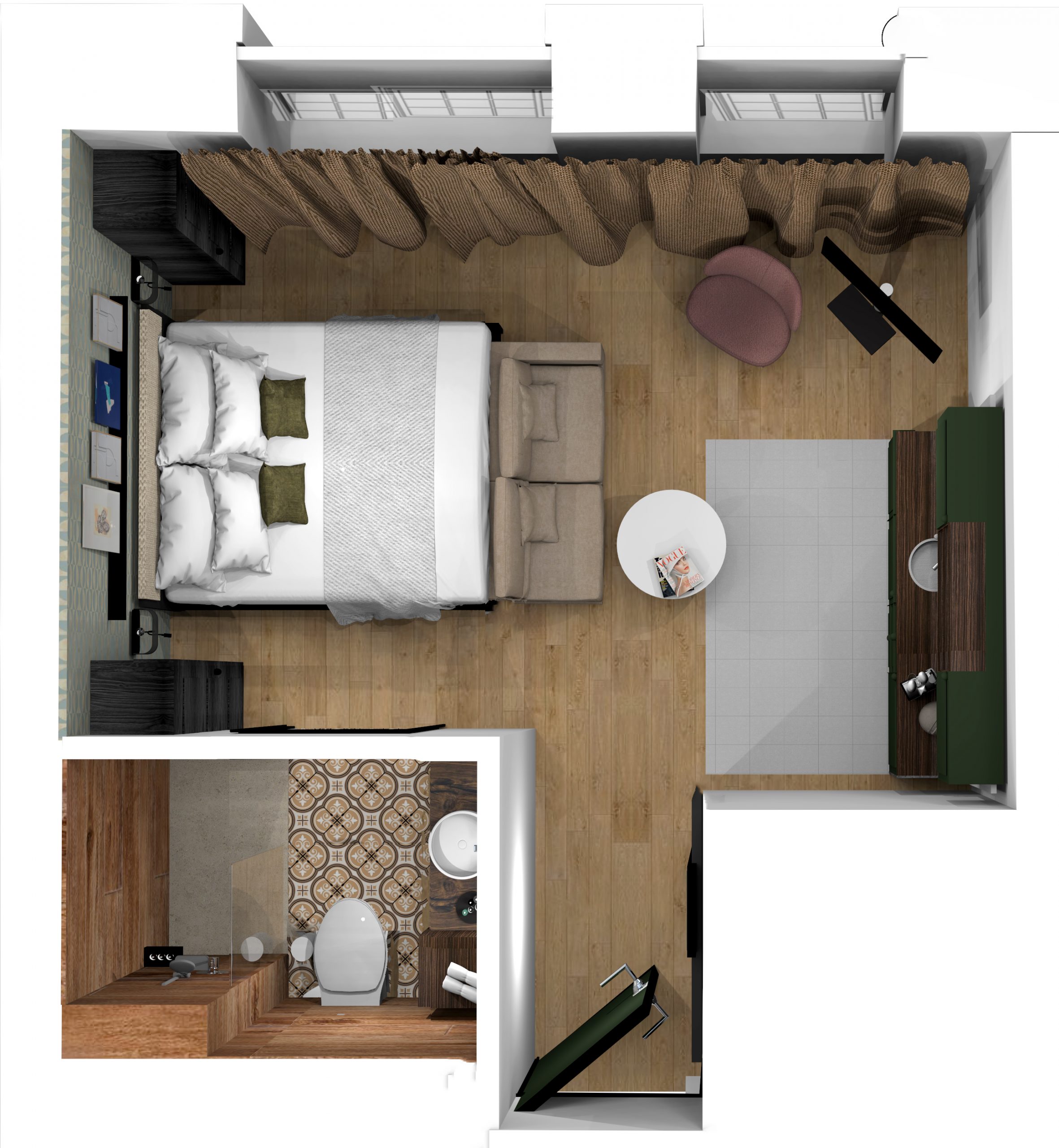 Το Στούντιο Διαμέρισμα στο master Mirabell είναι ένας ζεστός και λειτουργικός χώρος 24 τ.μ., ιδανικός για έως και 2 επισκέπτες.